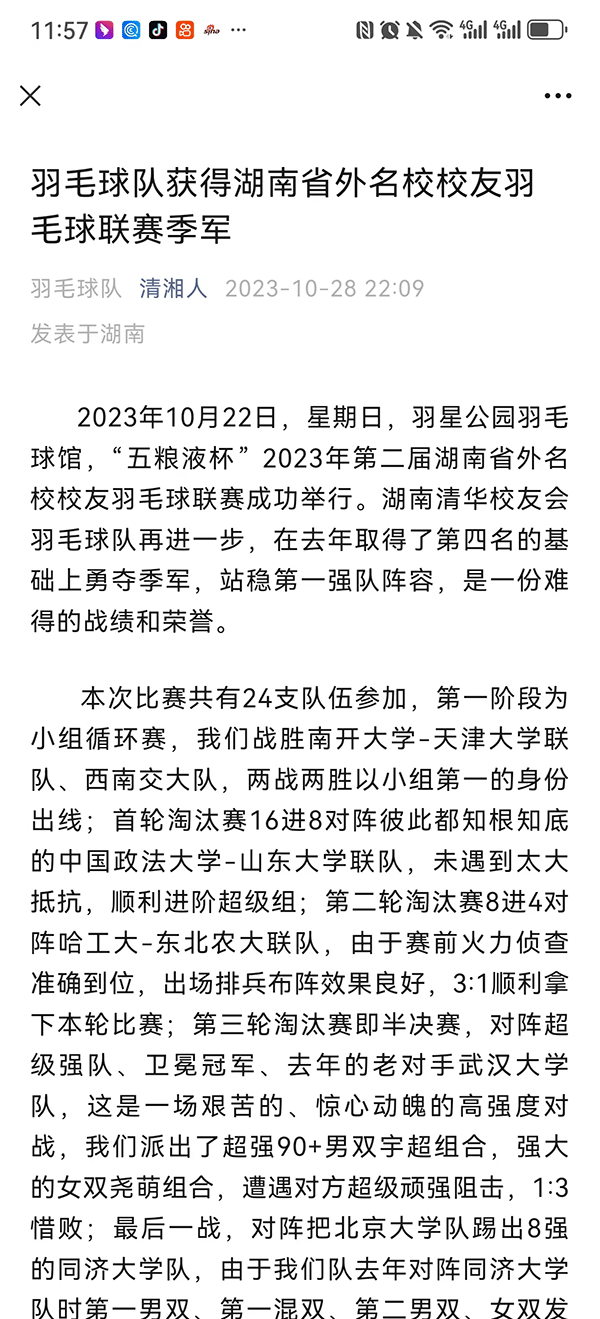 祝賀羊奶粉領(lǐng)軍品牌【歐能達】贊助的湖南省清華大學校友會羽毛球隊獲得“五糧液杯”2023年第二屆湖南省外名校校友羽毛球聯(lián)賽季軍?。?!