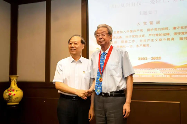 中國輕工聯(lián)黨委副書記王世成為宋昆岡同志佩戴紀(jì)念章