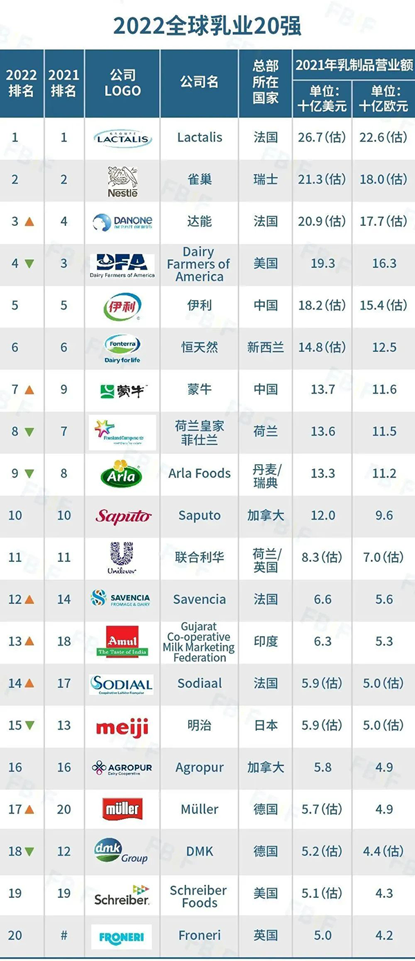今年的全球乳業(yè)20強(qiáng)企業(yè)排行榜如下: