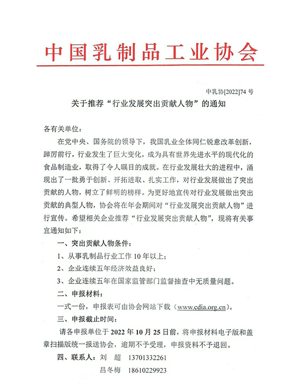 關(guān)于推薦“行業(yè)發(fā)展突出貢獻(xiàn)人物”的通知