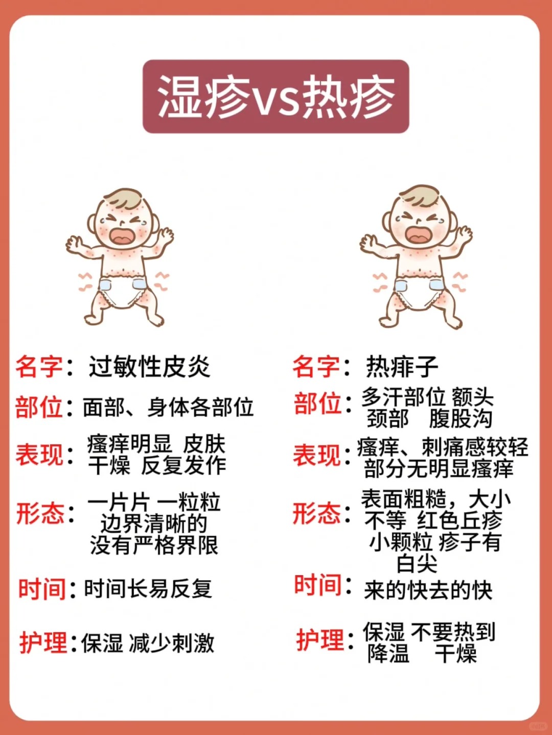 如何區(qū)分寶寶濕疹和熱疹,新手父母可能對這兩種情況不太了解,容易混淆,濕疹和熱疹總是傻傻分不清,這里給大家整理了一篇濕疹與熱疹的區(qū)別及怎么護(hù)理?濕疹和熱疹需要明確區(qū)分,針對性給出具體的處理建議。