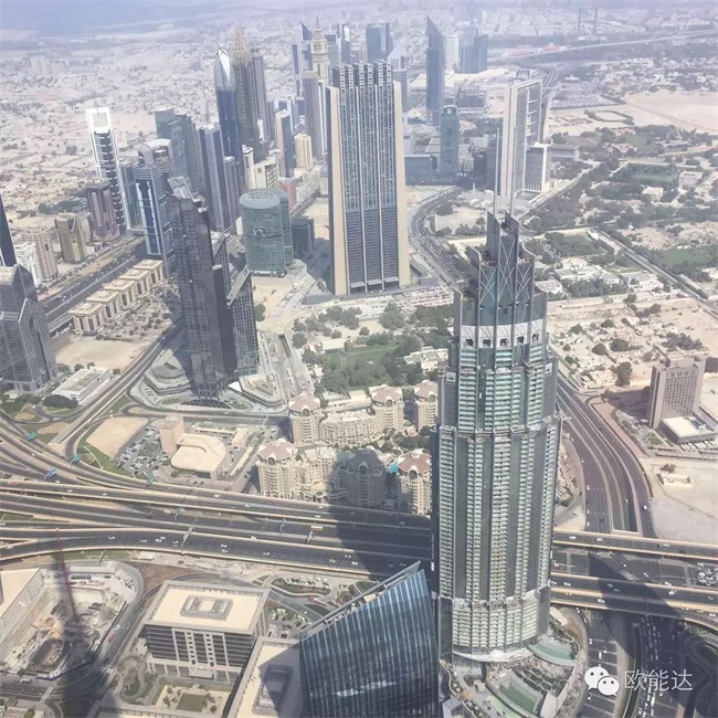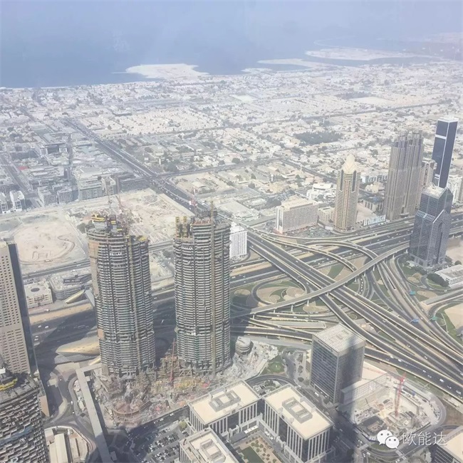 站在世界高樓迪拜塔的452米(125層)處俯瞰一半是沙漠,一半是海洋的神奇迪拜,從高處遠(yuǎn)眺,風(fēng)景并不是我想象的沙漠地帶的灰黃,只是周邊的建筑工地帶來的些許灰塵。你可以看到有更多的工地和腳手架,正在忙創(chuàng)造下一個的奇跡!美不勝收,嘆為觀止。