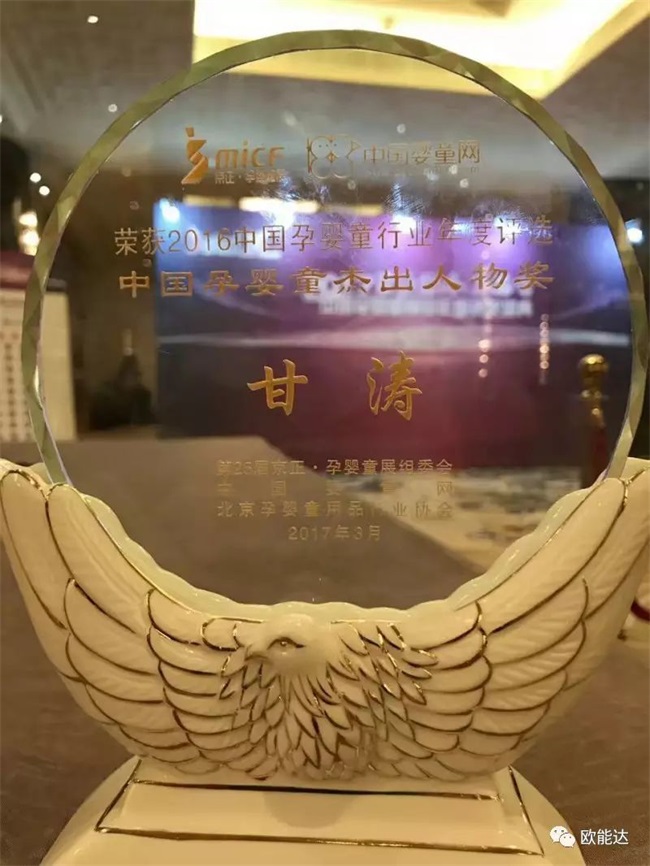 2017年3月24日,2016中國孕嬰童行業(yè)年度評選頒獎晚會在北京中國大飯店隆重舉行,現(xiàn)場揭曉了中國孕嬰童行業(yè)杰出人物。行業(yè)杰出人物獎共有31位人物參與角逐,并由950多萬人次大眾投票和200位專家評審投票產(chǎn)生。
