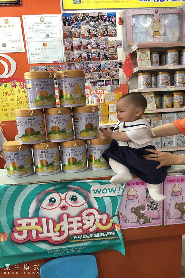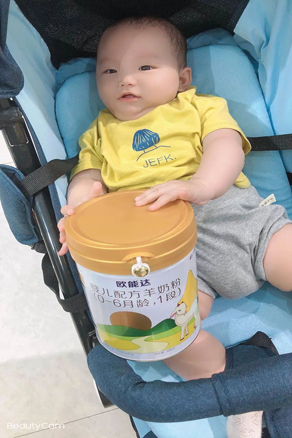 小寶寶小手抓著歐能達(dá)羊奶不放